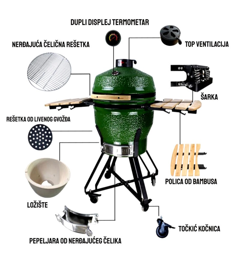 Za one koji žude za sledećim nivoom inovacije i sa funkcijama odličan izbor je naši Kamado roštilji u kojima mozete spremati razlicite specijalitete od klasicnog roštilja, a mozete ga koristiti i kao smoker za pripremanje pizza ili različitih vrsta hleba i peciva, a to vam omogućava precizna kontroloa temperature. Ovaj roštilj je idealan za spremanje bilo kojeg jela sa praktičnošću i lakoćom.